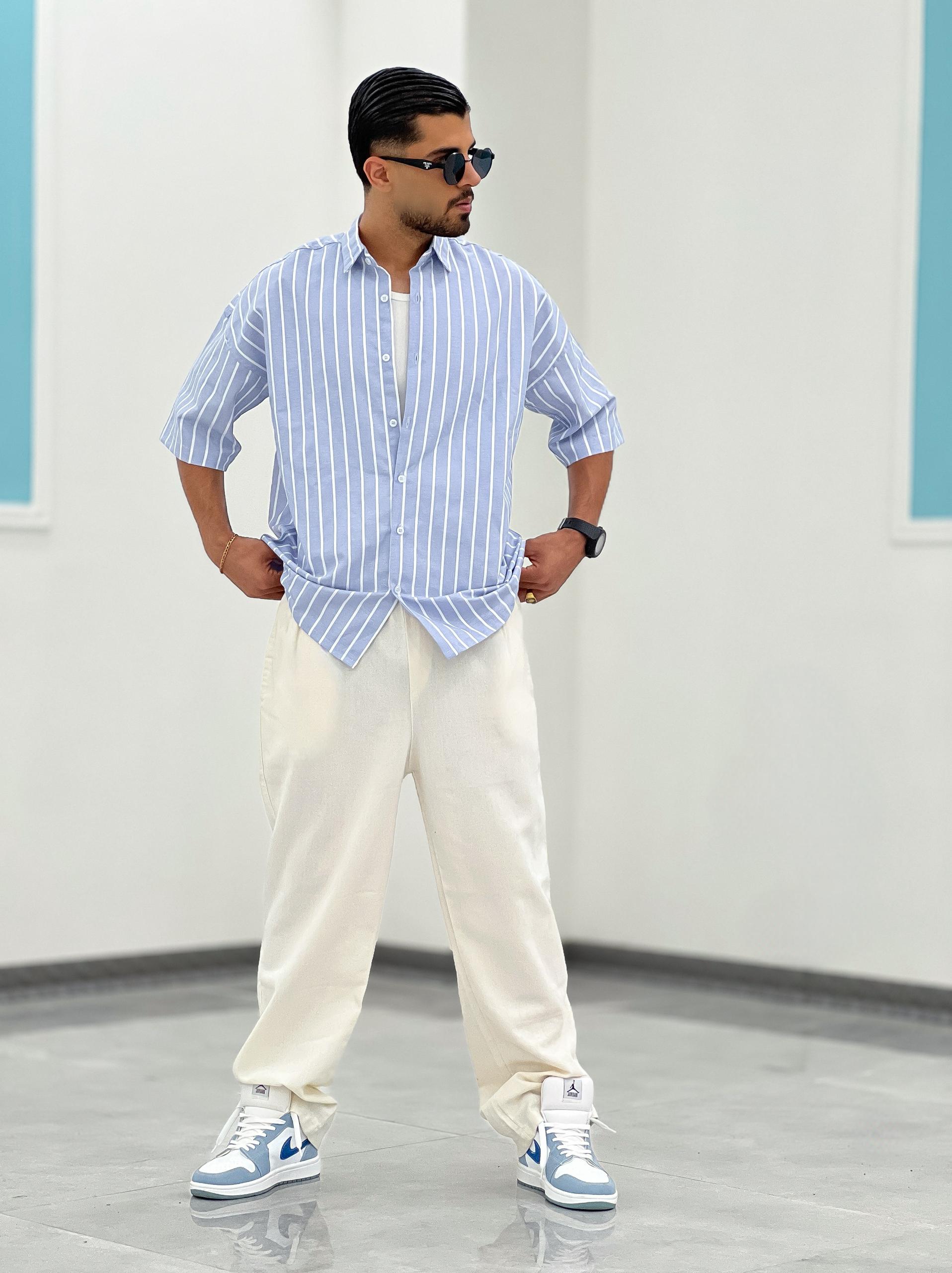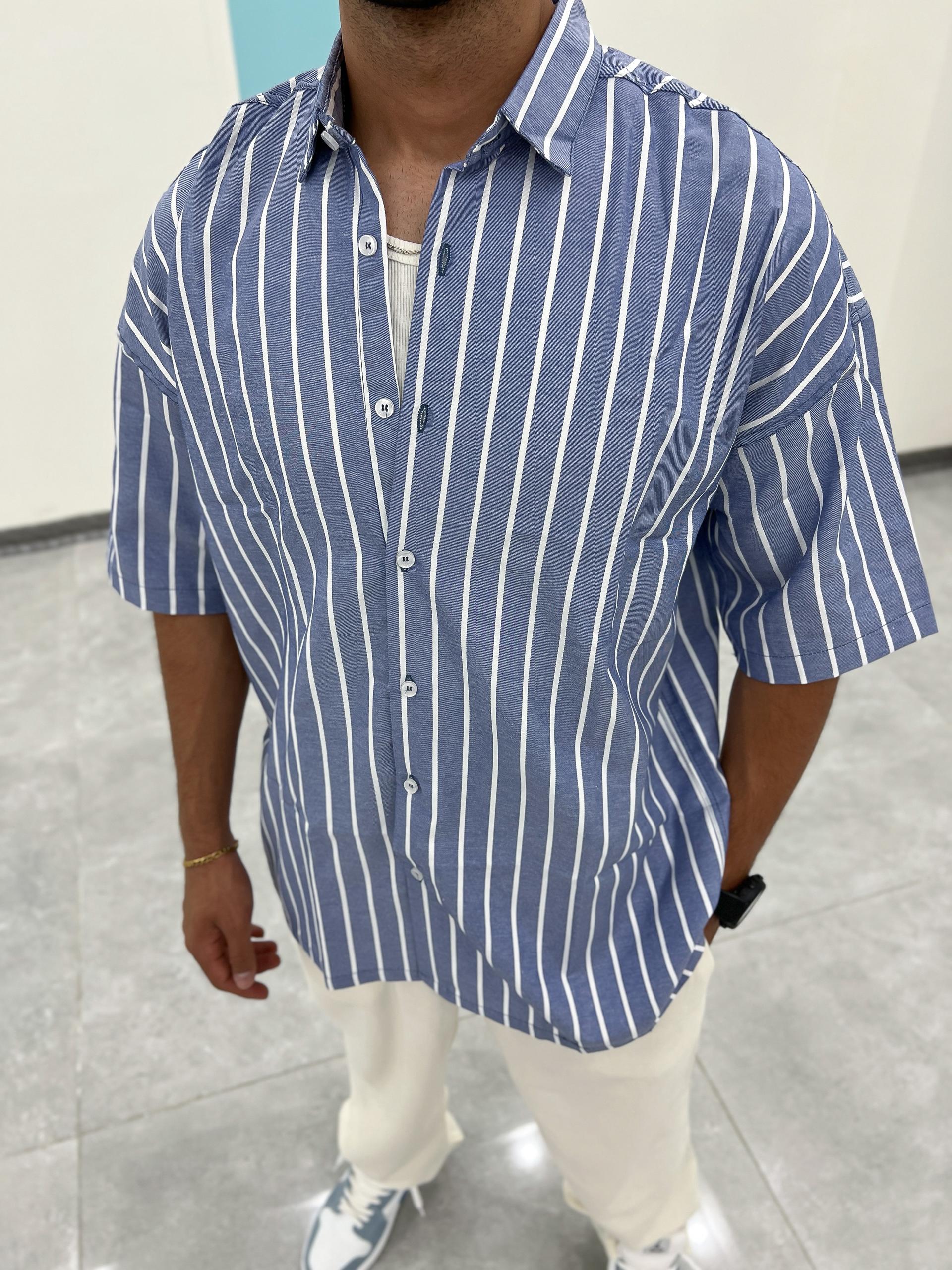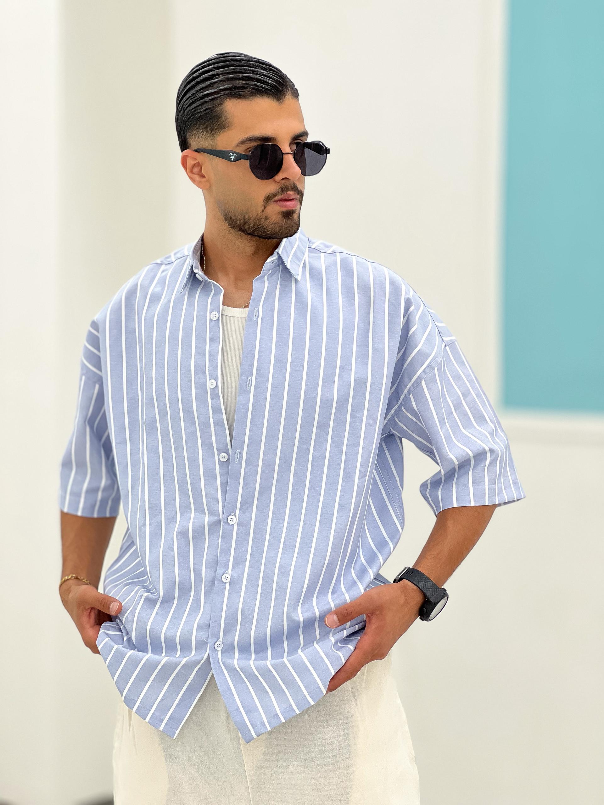 پیراهن راه راه تمام نخ، بدون ابرفت