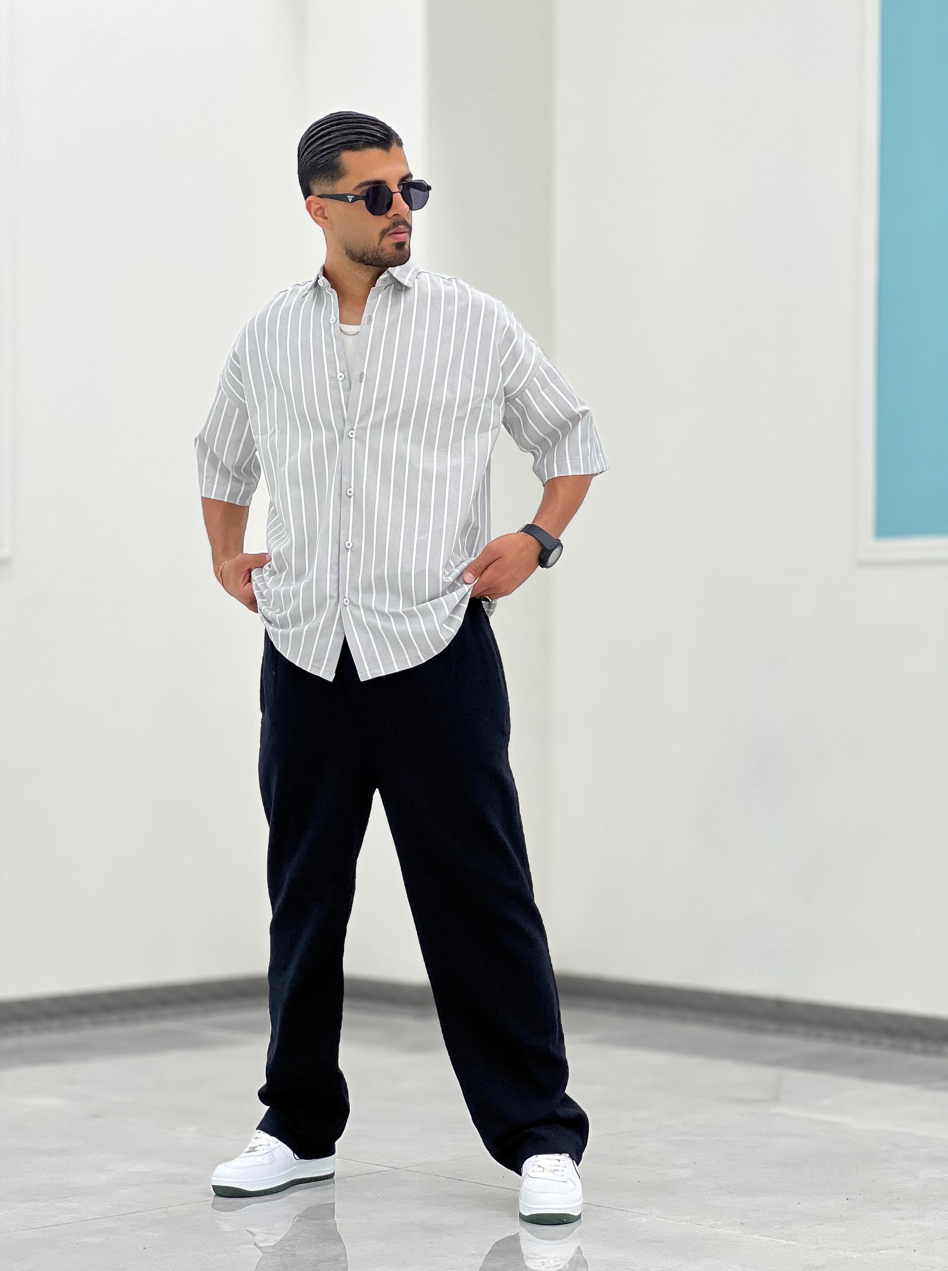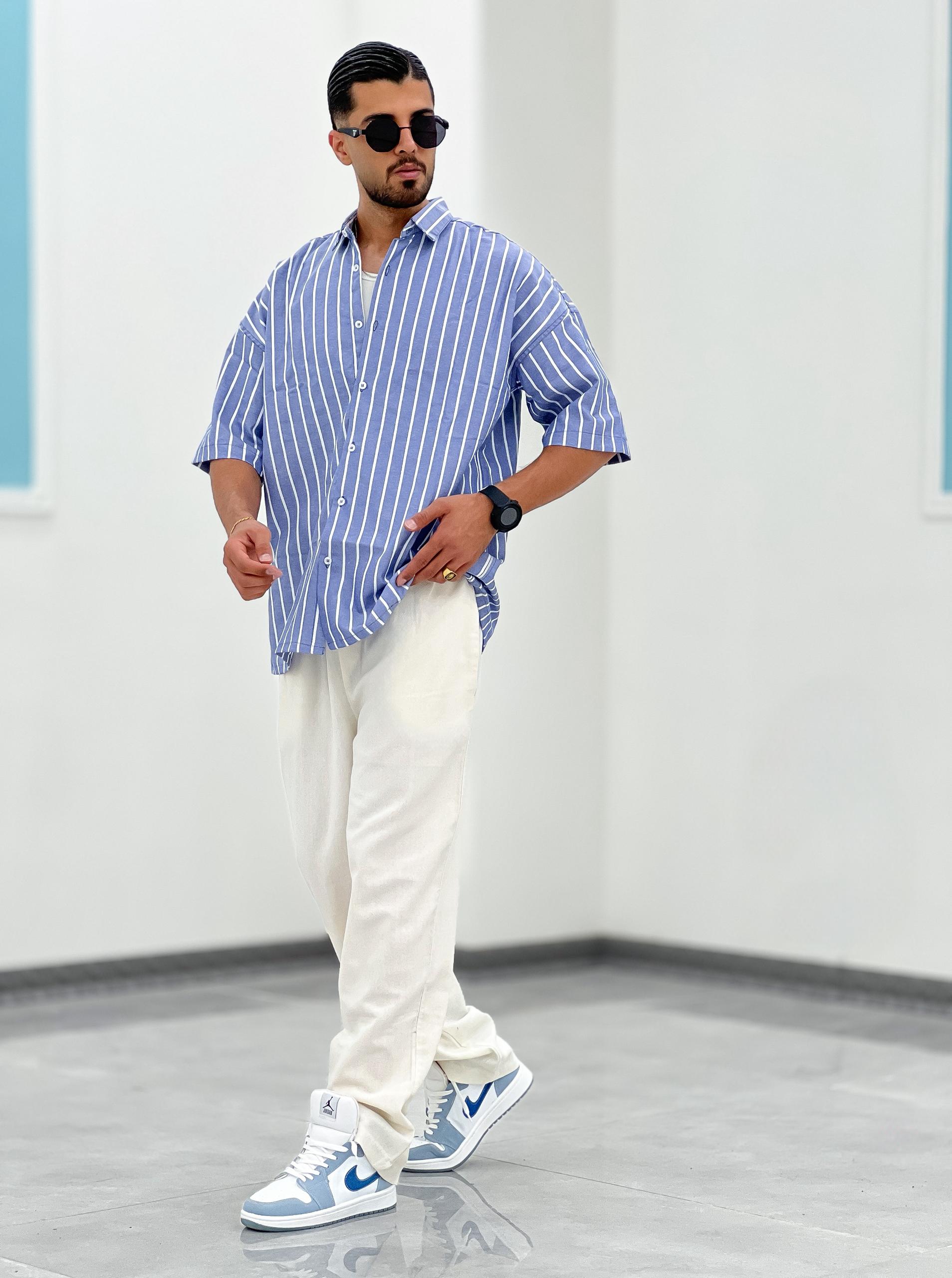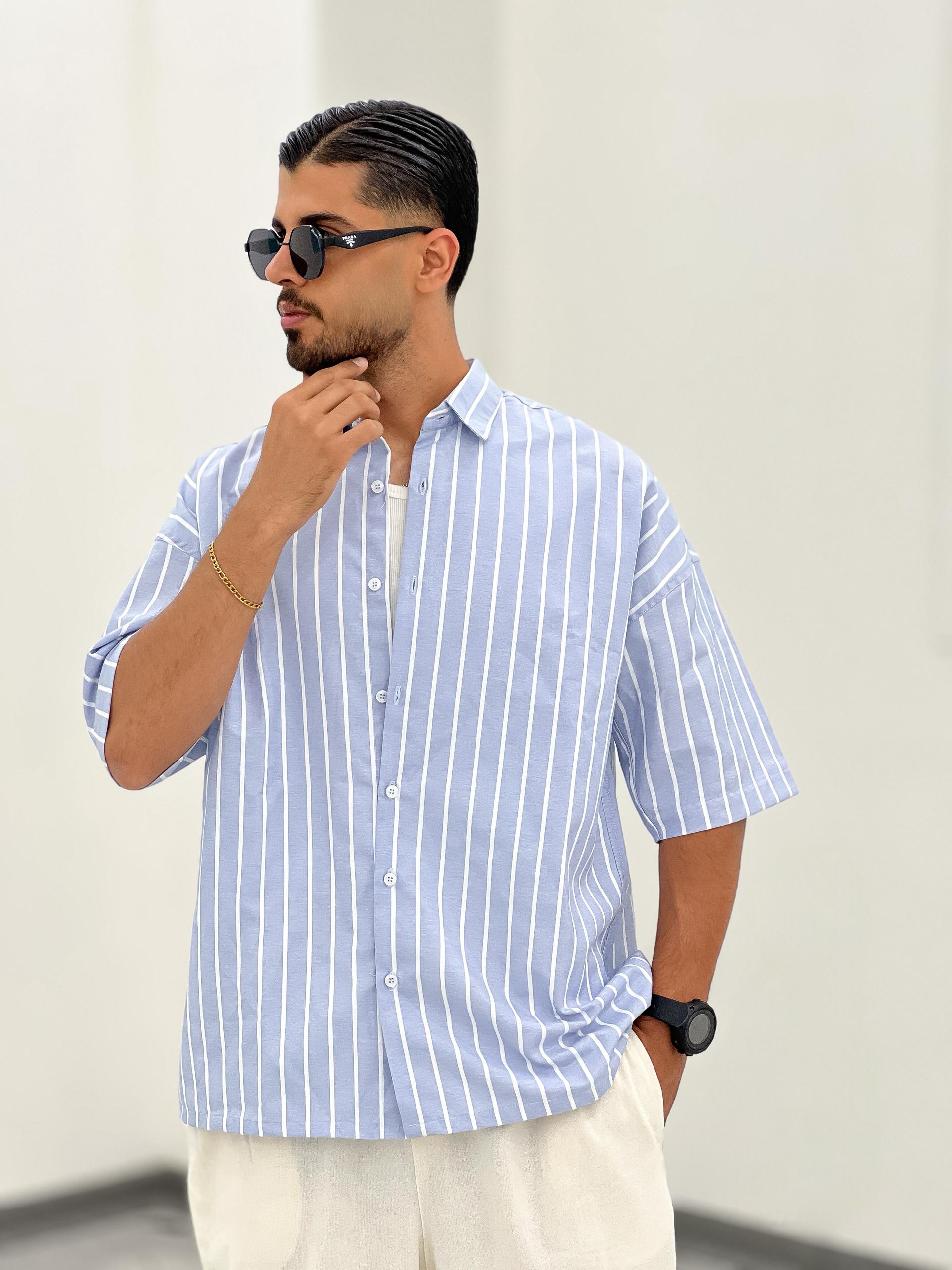 پیراهن راه راه تمام نخ، بدون ابرفت