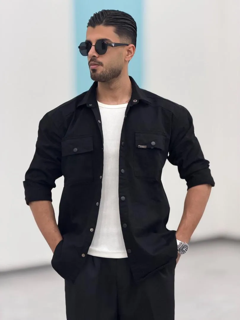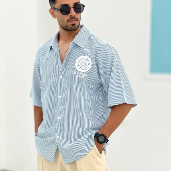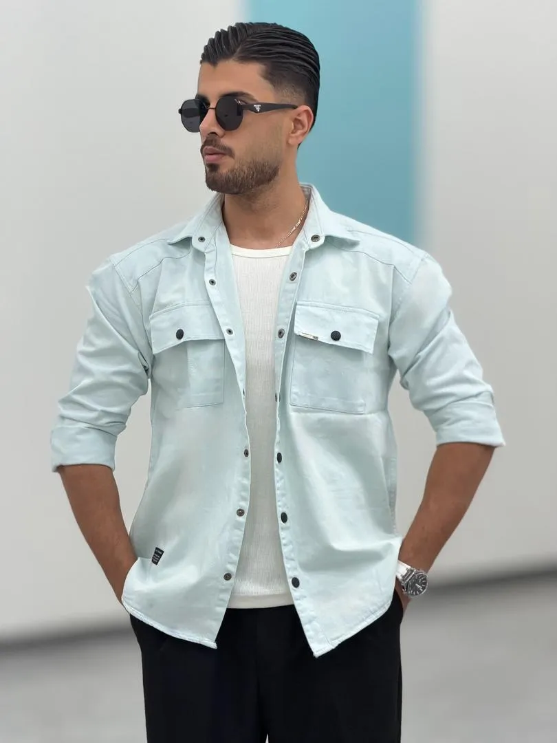پیراهن کتان ، دوجیب ، دکمه پرس ، استین بلند