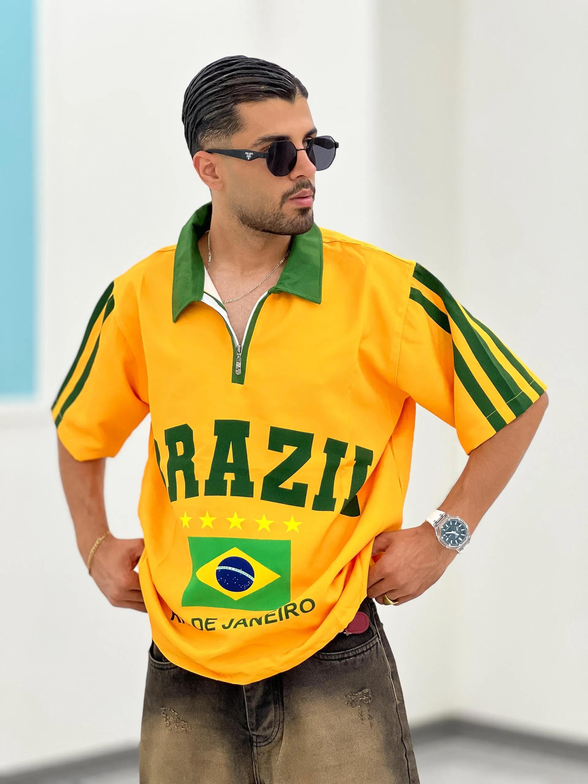 تیشرت پارچه مازراتی ، نیم زیپ ، فول چاپ